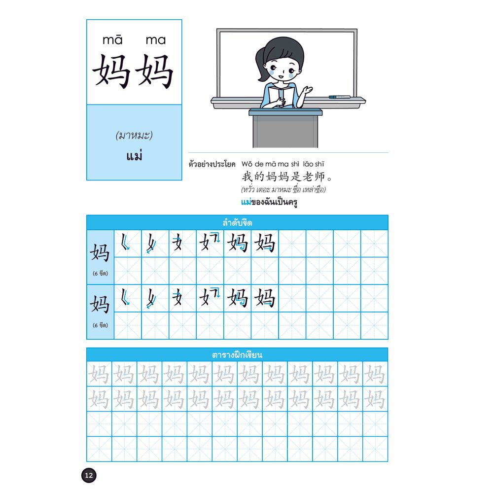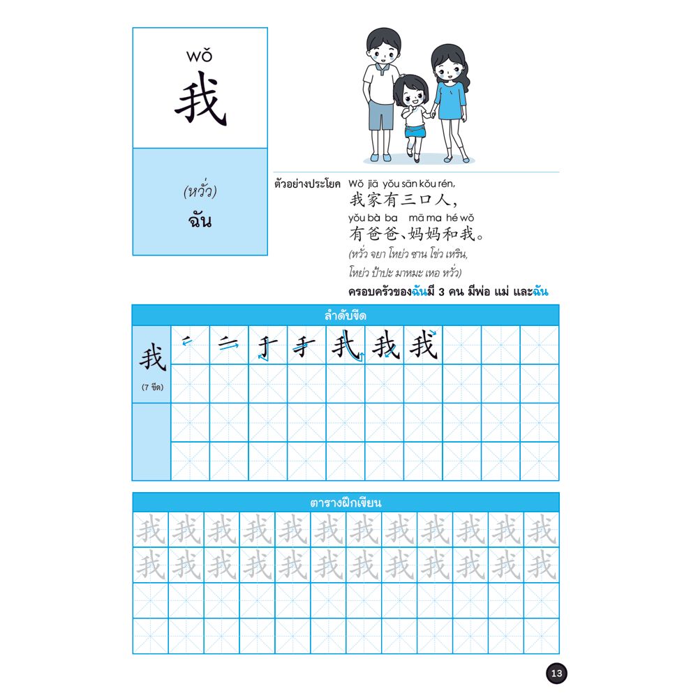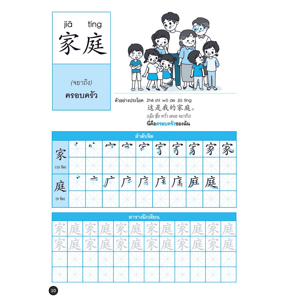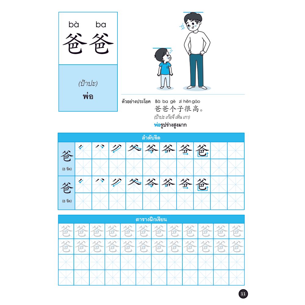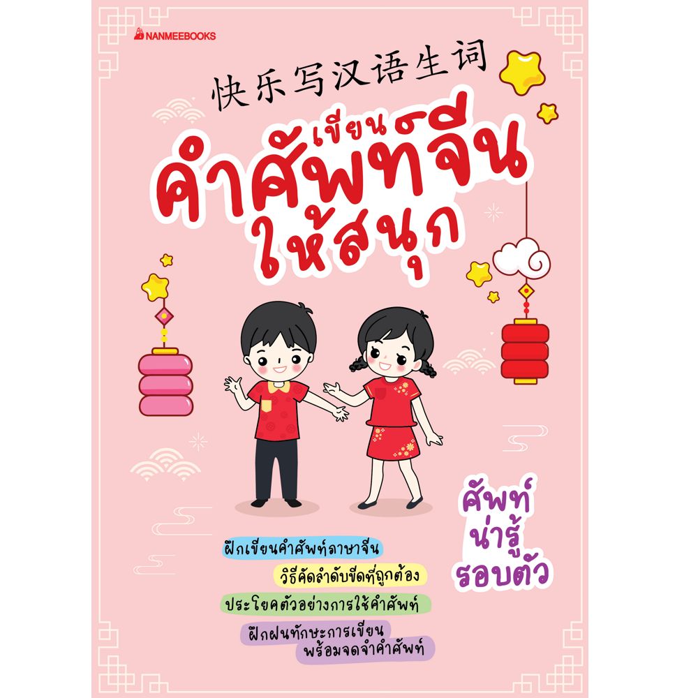 เขียนคำศัพท์จีนให้สนุก 快乐写汉字 สมุดคัดคำศัพท์จีนพื้นฐานที่ควรเรียนรู้และน่าสนใจ จำนวน 50 คำ แบ่งเป็น 5 หมวดหมู่ คือ ครอบครัว ร่างกาย โรงเรียน สี สัตว์ จุดเด่น
