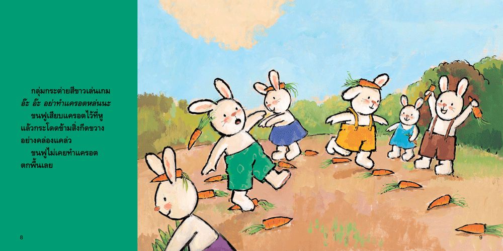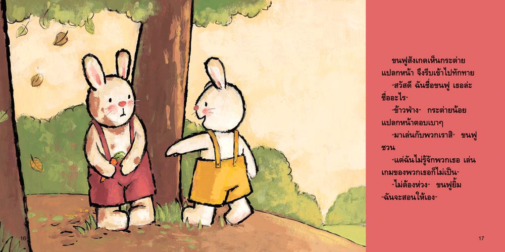 เติบโตอย่างเข้มแข็งไปพร้อมกับกระต่ายน้อยขนฟู ขนฟู กระต่ายน้อยที่กำลังเติบโต เขาอยากมีเพื่อน อยากเป็นเหมือนเพื่อน เขาต้องเรียนรู้การจัดการอารมณ์และเผชิญหน้ากับสถานการณ์ต่างๆไม่ว่าจะเป็นความตาย การเป็นพี่ที่ดี การมีเพื่อนสนิท ความเคารพในพื้นที่ส่วนตัว หรือความกล้าหาญที่ต้องอยู่คนเดียวในเวลากลางคืน นิทานสร้างเสริมประสบการณ์ชีวิต ชวนเด็กๆเรียนรู้เรื่องราวรอบตัว ส่งเสริมทักษะ EF และท้ายเล่มมีกิจกรรมเสริมการเรียนรู้