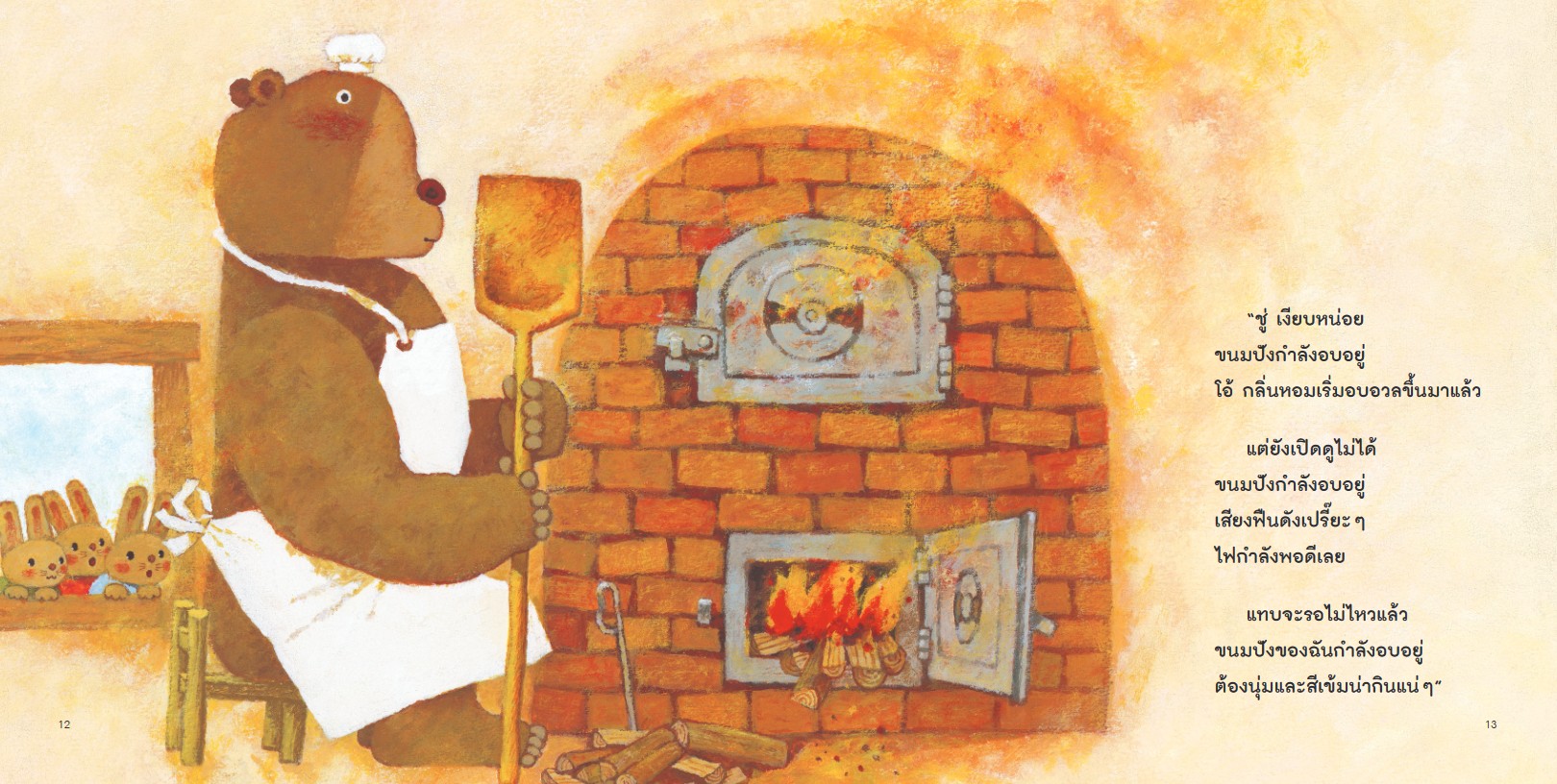 🥐คุณหมีกล่าวขอโทษและช่วยทำขนมปังเพื่อเป็นการไถ่โทษ กระต่ายเจ้าของร้านสอนวิธีทำขนมปังแล้วให้คุณหมีทำคนเดียว ระหว่างที่นั่งรอขนมปังอบอย่างตั้งใจ ทันใดนั้นขนมปังขนาดยักษ์ก็เด้งออกมาจากเตาอบ เหล่ากระต่ายน้อยที่แอบมองอยู่รีบเข้ามาช่วยคุณหมีทำขนมปังรูปต่าง ๆ มากมาย เมื่อเจ้าของร้านกลับมาเจอขนมปังรูปแปลกประหลาดเต็มไปหมดจึงโกรธมาก