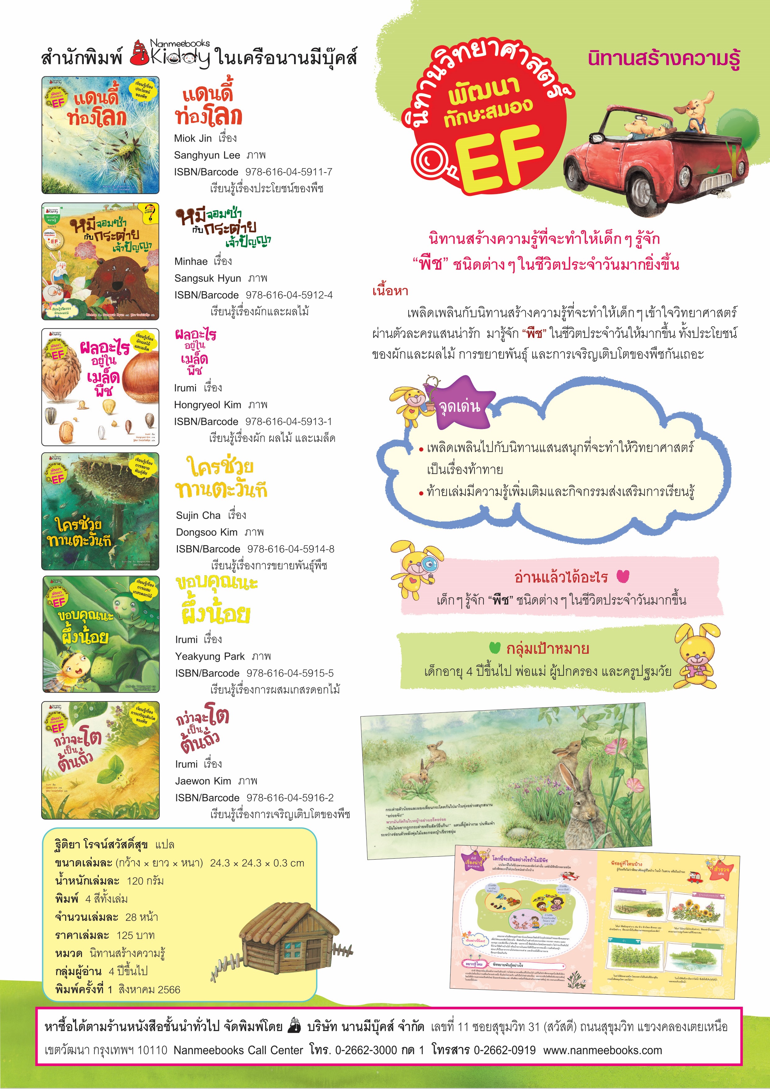 เพลิดเพลินกับนิทานสร้างความรู้ที่จะทำให้เด็ก ๆ เข้าใจวิทยาศาสตร์ผ่านตัวละครแสนน่ารัก มารู้จัก “พืช” ในชีวิตประจำวันให้มากขึ้น ทั้งประโยชน์ของผักและผลไม้ การขยายพันธุ์ และการเจริญเติบโตของพืชกันเถอะ