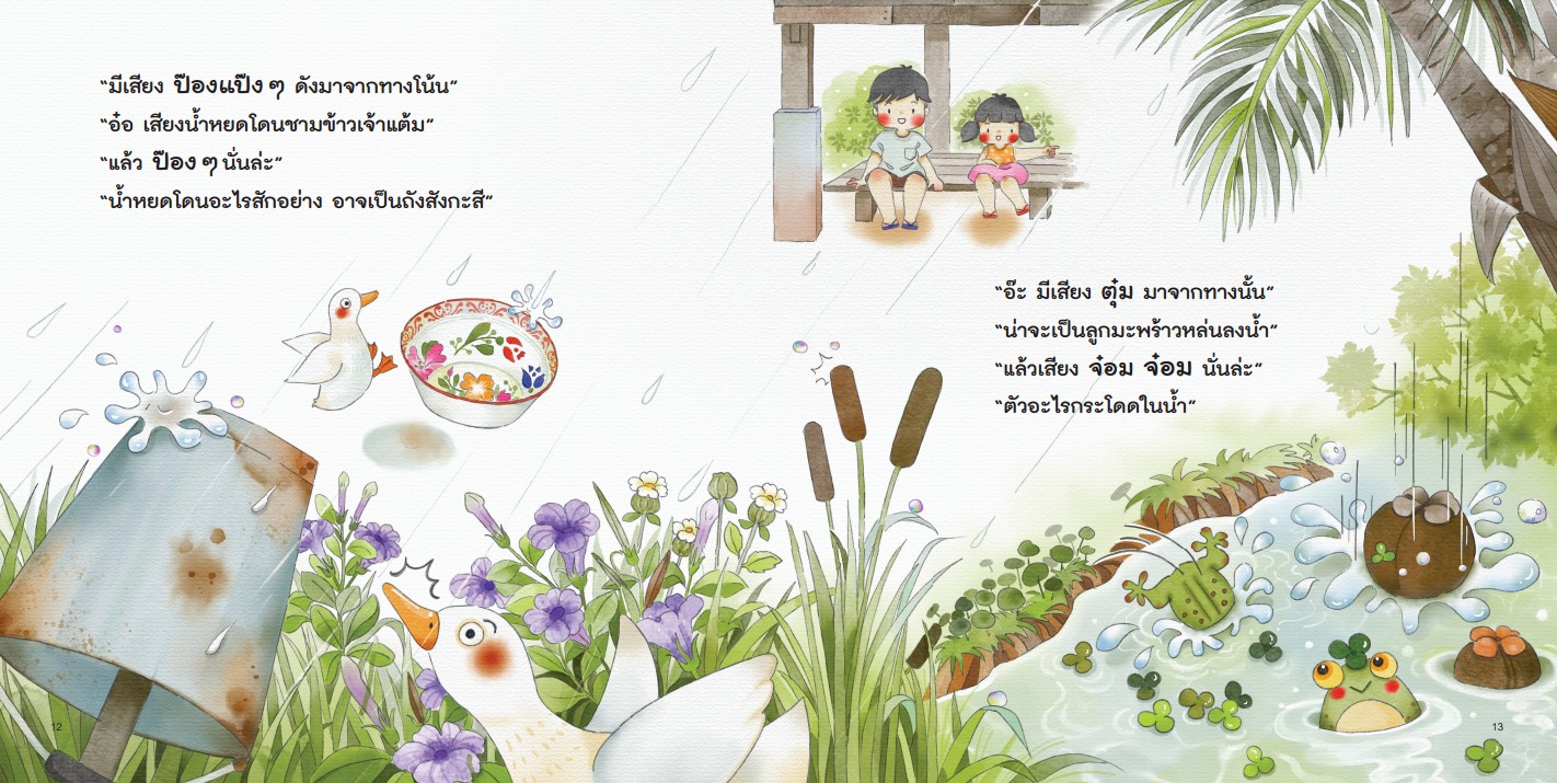 เสียงดนตรีในสายฝน (ชุดนิทานบ้านนา) . วันนี้ที่บ้านนาฝนตกเอกและขวัญจึงต้องอยู่แต่ในบ้าน ทั้งสองนั่งฟังเสียงฝนที่ตกกระทบลงบนพื้นผิวต่าง ๆ แล้วชวนกันนึกถึงเสียงในธรรมชาติอื่น ๆ เช่น เสียงนก เสียงกบ เอกและขวัญรู้สึกว่าเสียงธรรมชาติช่างไพเราะเหลือเกิน แต่เสียงที่เพราะที่สุดในตอนนี้ก็คือ เสียงของแม่ที่เรียกกินข้าวนั่นเอง ![]() ![]() ![]() ![]() |