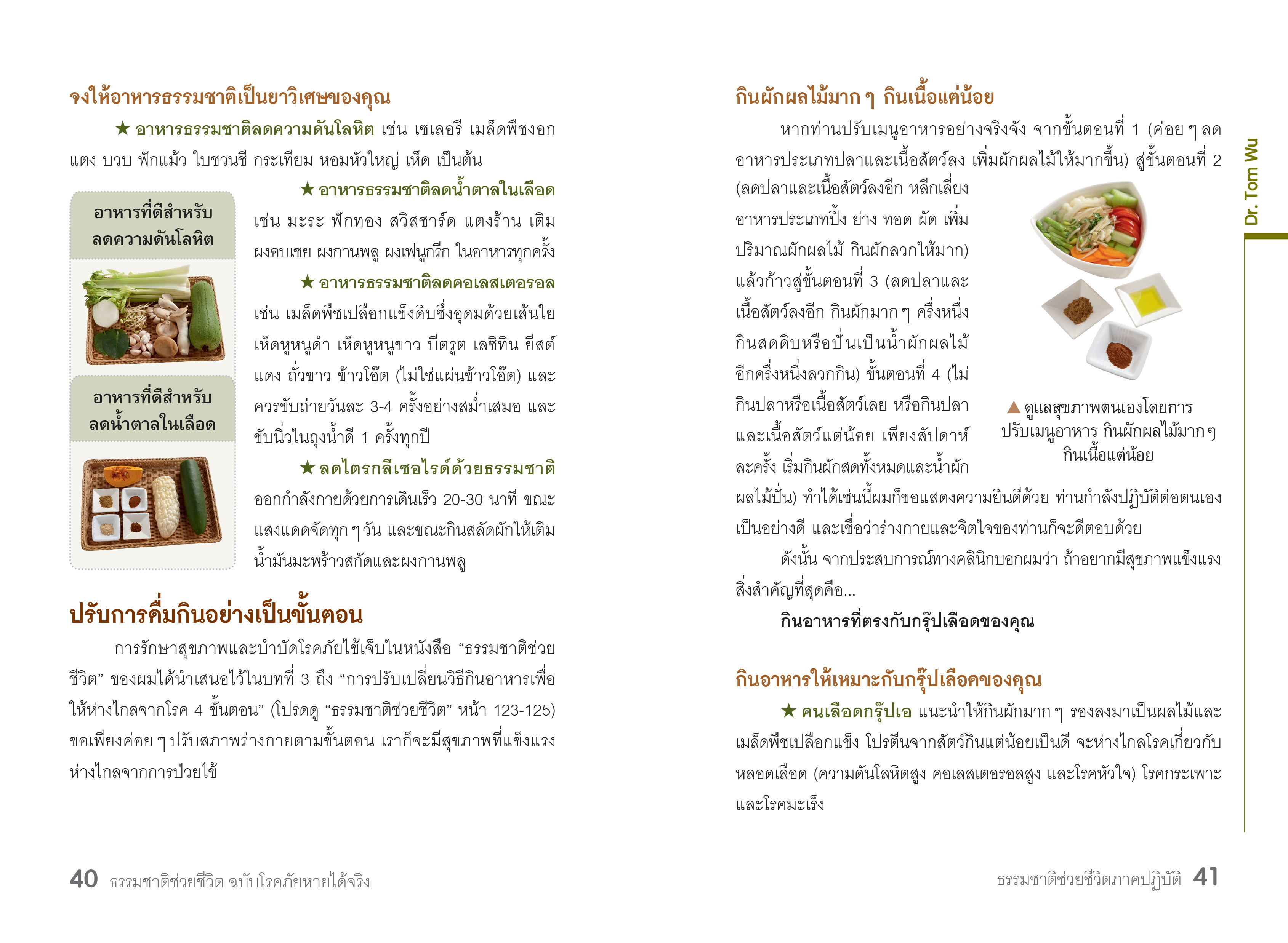 ตัวอย่างสารบัญ บทที่ 1 ธรรมชาติช่วยชีวิตภาคปฏิบัติ บทที่ 2 การดื่มกินอาหารให้ถูกกับโรคแบบธรรมชาติช่วยชีวิต บทที่3การออกกำาลังกายแบบธรรมชาติช่วยชีวิต บทที่4รักษาโรคด้วยการนวดแบบธรรมชาติช่วยชีวิต เกี่ยวกับผู้เขียนDr. Tom Wu แพทย์ผู้เชี่ยวชาญด้านธรรมชาติบำบัด โภชนศาสตร์ และเวชศาสตร์ทางเลือก ผู้เคยป่วยเป็นโรคมะเร็งและหายขาดแล้วด้วยวิธีธรรมชาติบำบัด เดินทางเผยแพร่วิธีกรรักษาสุขภาพและช่วยเหลือผู้คนมาแล้วกว่า 20 ประเทศทั่วโลก ![]() ![]() ![]() ![]() ![]() ![]() ![]() ![]() |