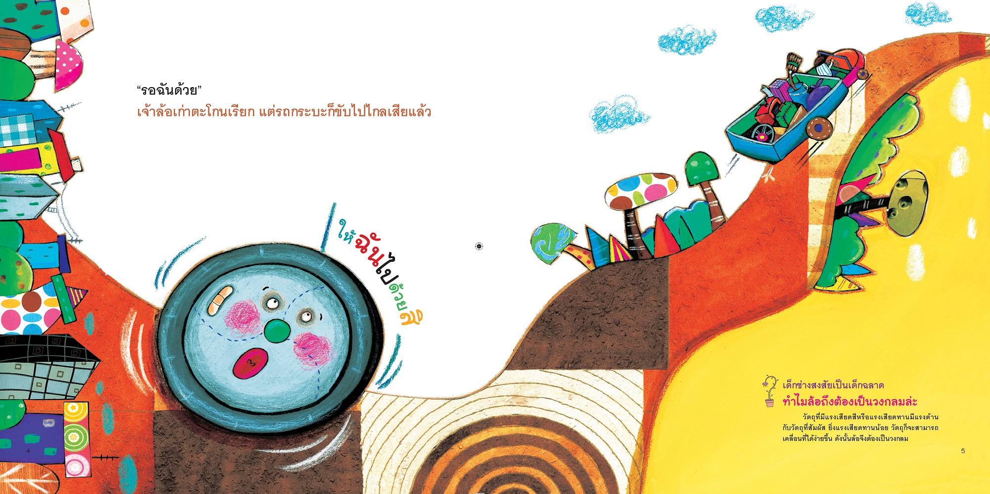 ล้อกลม ๆ กับโลกกว้าง ๆ ชุด นิทานวิทย์ . นิทานสร้างความรู้ที่จะทำให้เด็กรู้จัก “เครื่องมือเครื่องใช้” ชนิดต่าง ๆ ในชีวิตประจำวันมากยิ่งขึ้น เพลิดเพลินกับนิทานสร้างความรู้ที่จะทำให้เด็ก ๆ เข้าใจวิทยาศาสตร์ผ่านตัวละครแสนน่ารัก มารู้จัก “เครื่องมือเครื่องใช้” ในชีวิตประจำวันให้มากขึ้น ทั้งประโยชน์ของแรง เครื่องทุ่นแรงต่าง ๆ ลักษณะของล้อ ฯลฯ . เรื่องย่อ ล้อกลม ๆ กลิ้งไปได้ทุกที่ พาเราไปไหนมาไหนได้โดยไม่ต้องเหนื่อยแรง แถมยังขนของหนัก ๆ ไปด้วยได้ แต่ก็ใช่ว่าล้อทุกชนิดจะเหมาะกับพาหนะทุกแบบ อยากรู้ไหมว่าล้อชนิดไหนเหมาะกับรถคันใด ตามเจ้าล้อกลมไปรู้จักเพื่อนล้อชนิดต่าง ๆ กันดีกว่า ![]() ![]() ![]() ![]() ![]() ![]() |