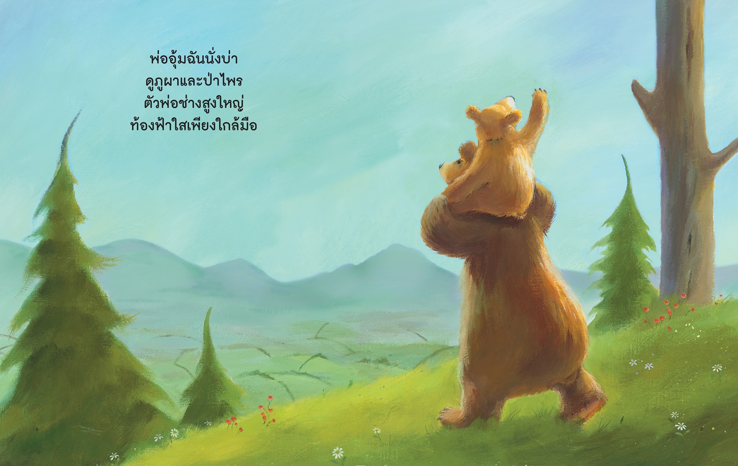 ทุก ๆ วันพ่อและลูกหมีไปเที่ยวเล่นด้วยกันเสมอ  ในสายตาของลูกหมีไม่มีใครเก่ง ฉลาด และเเข็งแรงเท่า “พ่อ” อีกแล้ว