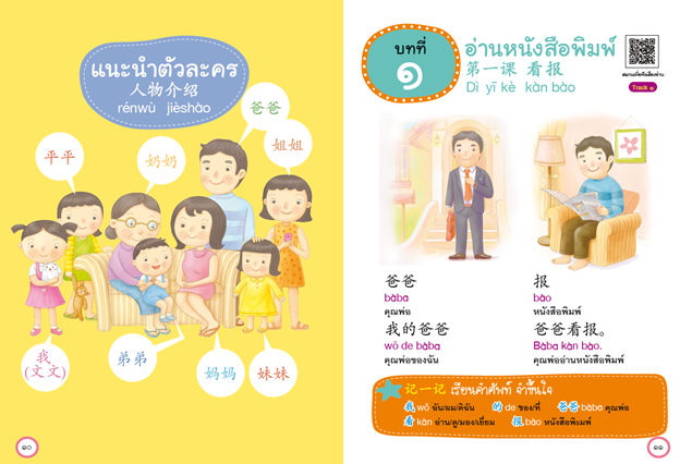 หนูน้อยพูดจีนกลาง หนังสือเสริมทักษะการพูดภาษาจีนกลางสำหรับเด็กวัย 5 ปีขึ้นไป มีทั้งหมด 21 บท เป็นบทสนทนาเกี่ยวกับเรื่องราวของครอบครัวแสนอบอุ่นของหนูน้อย Wénwén ที่มีสมาชิก 8 คน ครอบคลุมเรื่องใกล้ตัวในชีวิตประจำวันของเด็ก ๆ ให้เด็ก ๆ ได้ฝึกออกเสียงพยัญชนะต้นของคำศัพท์หลักแต่ละบท จนครบ 21 เสียง และออกเสียงสระและผันเสียงวรรณยุกต์อย่างครบถ้วน แฝง-หลักไวยากรณ์สำคัญไว้ในประโยคให้เด็ก ๆ ได้ซึมซับเรียนรู้ไปในตัว มีการใช้ภาพประกอบกระตุ้นให้เด็ก ๆ คิดเชื่อมโยง ฝึกทักษะการพูดโดยเริ่มจากคำศัพท์หรือวลีสั้น ๆ ก่อน แล้วฝึกเรียงคำให้เป็นประโยคง่าย ๆ ฝึกถาม-ตอบ ฝึกร้อยเรียงประโยคให้เป็นเรื่องราว ![]() ![]() ![]() ![]() ![]() |