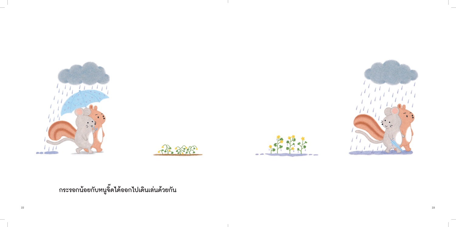 เมฆฝนของกระรอกน้อย . เจ้ากระรอกน้อยมีเมฆฝนติดตัวไปทุกที่ ไม่ว่าท้องฟ้าจะสดใสแค่ไหนก็ยังมีฝนตกอยุ่บนหัวของเขา จนกระทั่งวันหนึ่งได้รู้จักกับกระต่าย แต่เพราะเมฆฝนของกระรอกน้อยก็ทำให้เป็นหวัดเสียได้ เมฆฝนของกระรอกน้อยจะหายไปได้ไหมนะ... . ![]() ![]() ![]() ![]() ![]() ![]() |