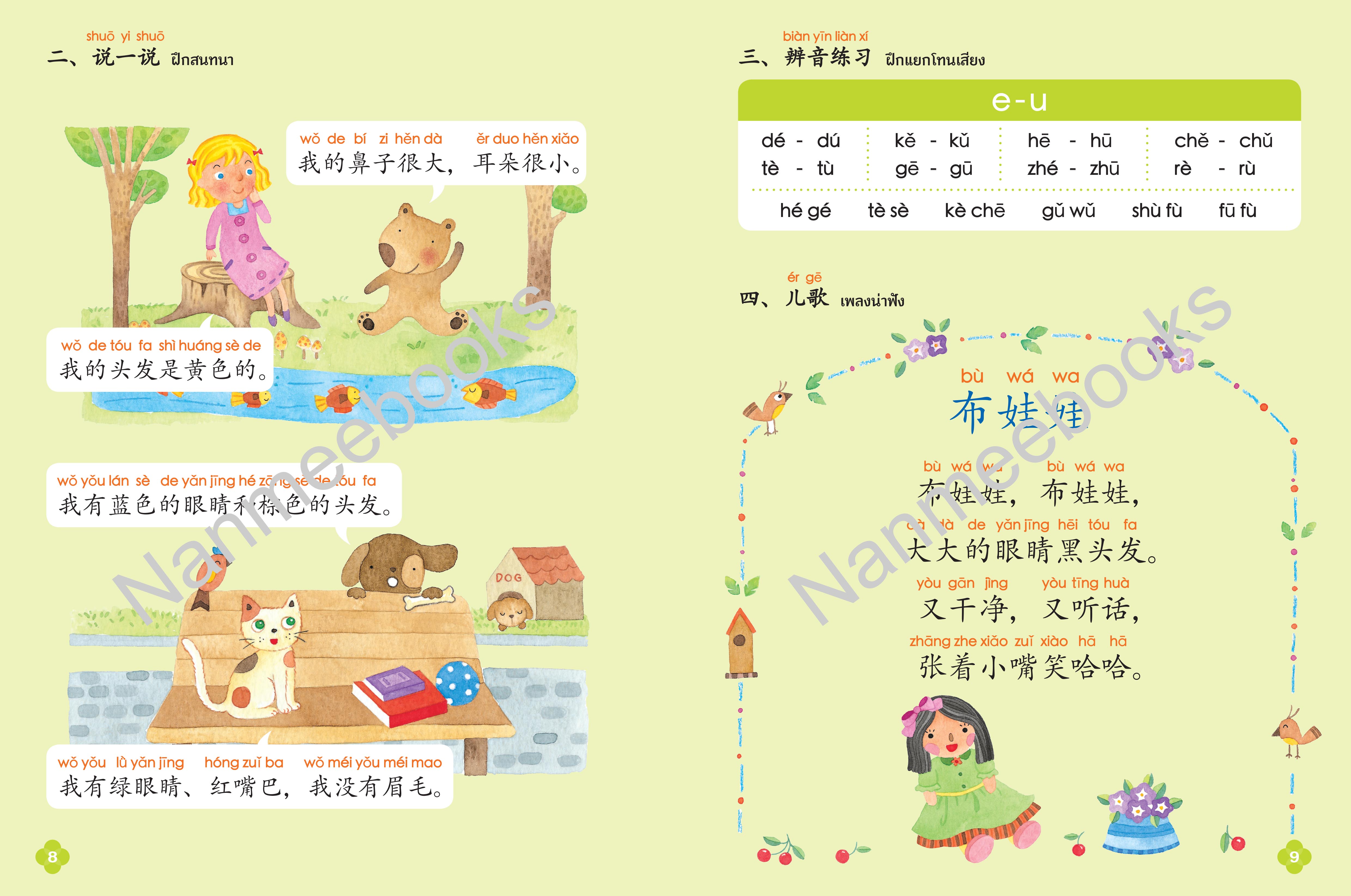 3. มีสัทอักษรพินอินกำกับคำศัพท์ วลีและประโยคตลอดทั้งเล่ม