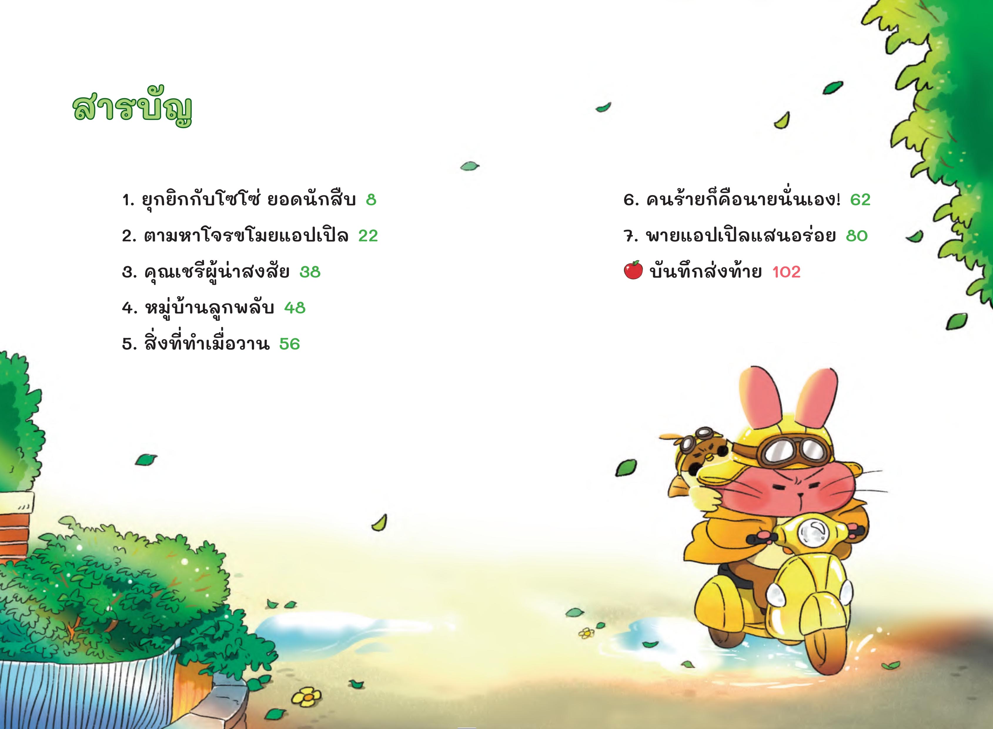นักสืบท้องผูก ตอน ปริศนาโจรขโมยแอปเปิล นักสืบท้องผูกมาแล้วครับ! เตรียมฮาท้องแข็งไปกับคดีสุดป่วนด้วยกัน ความลับของนักสืบท้องผูกคือ จริงๆแล้วเขาไม่ได้ตัวสีแดง แต่ที่เป็นแบบนี้ก็เพราะความเครียด โดยเฉพาะเวลาที่ต้องไปไขคดียากๆ คดีใหม่มาแล้ว! เกิดเหตุโจรกรรมแอปเปิลจากหมู่บ้านแอปเปิล นักสืบท้องผูกจึงต้องออกโรงตามหาคนร้าย โดยผู้ต้องสงสัยมีมากมายไม่ว่าจะเป็นพนักงานในสวนแอปเปิลที่มากจากหมู่บ้านลูกพลับ ซึ่งไม่ถูกกับหมู่บ้านแอปเปิล ลูกสาวของหัวหน้าหมู่บ้าน และคนขับรถส่งของ ร่วมไขคดีไปด้วยกัน และสนุกกับเกมในเล่ม