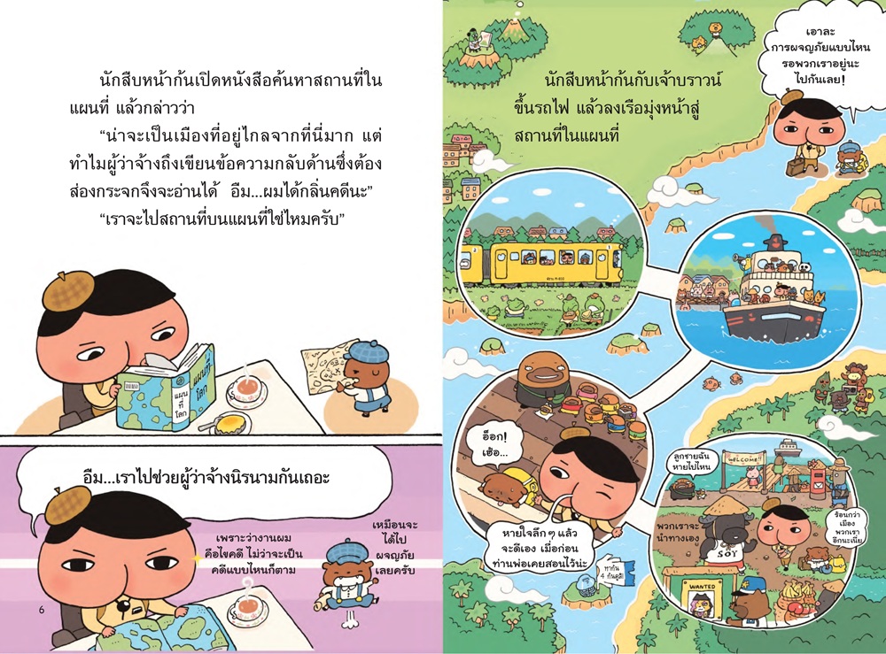 สนุกกับการสืบคดีไขปริศนาไปพร้อมกับนักสืบหน้าก้น ท้ายเล่มมีเคล็ดลับการเป็นนักสืบ เกมจับผิดภาพ และเฉลยปริศนาท้ายเล่ม และอัปเกรดความสนุกในรูปแบบวรรณกรรมเล่มแรกเพื่อให้เด็กอ่านหนังสือได้คล่องขึ้น