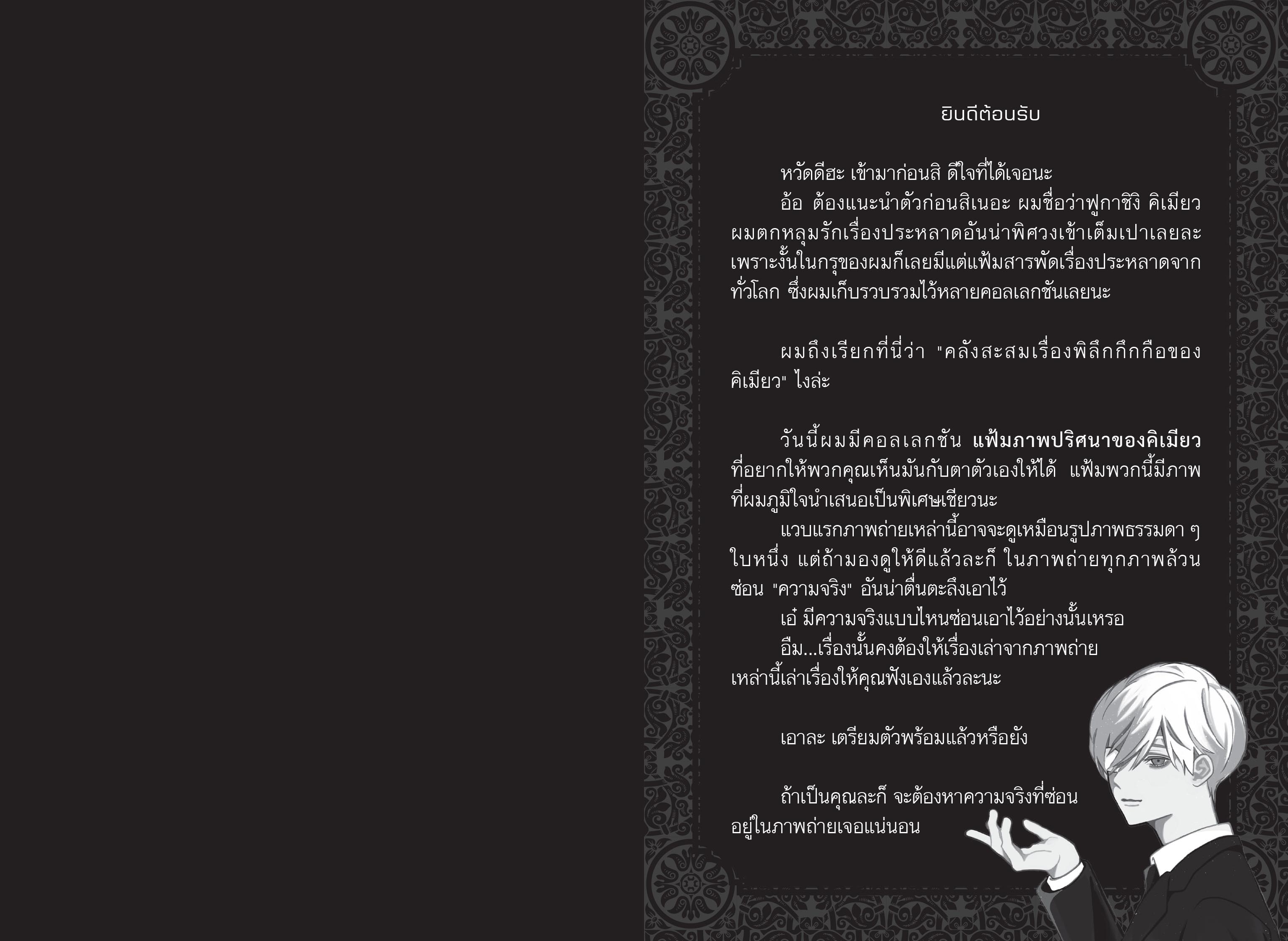 ยินดีต้อนรับสู่ “แฟ้มภาพปริศนาของคิเมียว”  แวบแรกภาพถ่ายเหล่านี้อาจจะดูเหมือนรูปภาพธรรมดา ๆ ใบหนึ่ง แต่ถ้ามองดูให้ดีแล้ว ทุกภาพล้วนซ่อน “ความจริง” อันน่าตื่นตะลึงเอาไว้